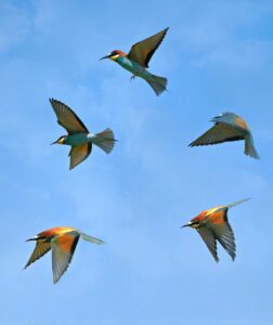 I called Bruce out and he joined me. We watched them dart back and forth across the garden, red bellies flashing. “Maybe robins,” he said.